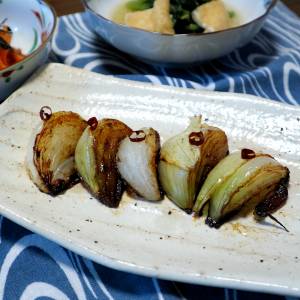 濃い焼き色をところどころつけて、香ばしさを出します。ちょっとピリ辛な大人の味わいで、お酒もすすみます。