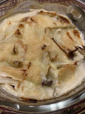 ホワイトソースを使わずにつくれるグラタン。じゃがいもには、たまねぎではなく、ねぎを合わせるのがポイント。この組み合わせ、とても合います。