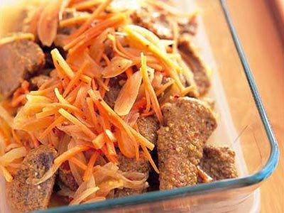 3のフライパンをサッとふき、サラダ油大さじ2を入れ、たまねぎとにんじんを軽くいためる。塩小さじ1/2、粒マスタード、しょうゆ小さじ1、レモン汁を加えて軽く混ぜ、3を戻し入れる。冷めたらすぐに食べられるが、密封容器に移し、冷蔵庫で4~5日間保存できる。