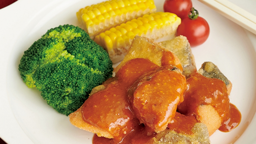サーモンフライの怪味(かいみ)ソースがけ