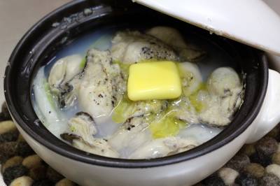 土鍋または厚手の鍋にねぎを敷き、1のかきを汁けをきって並べ、こしょう少々をふる。ふたをして強めの中火にかけ、かきがふっくらとするまで5分間ほど煮る。バターを落とし、好みでしょうゆ、一味とうがらしをふる。