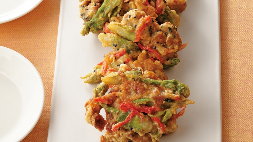 少量の油で揚げ焼きにする、「かき揚げ」ならぬ「かき焼き」。時短にぴったりのテクニックです。揚げれば、たらの芽のほろ苦いおいしさが際立ちます。