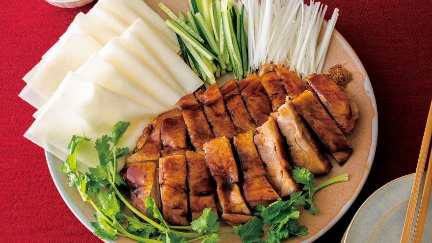 皮をパリパリに焼いて特製のたれを塗ったら、いつもの鶏肉も、北京ダックそっくりに!