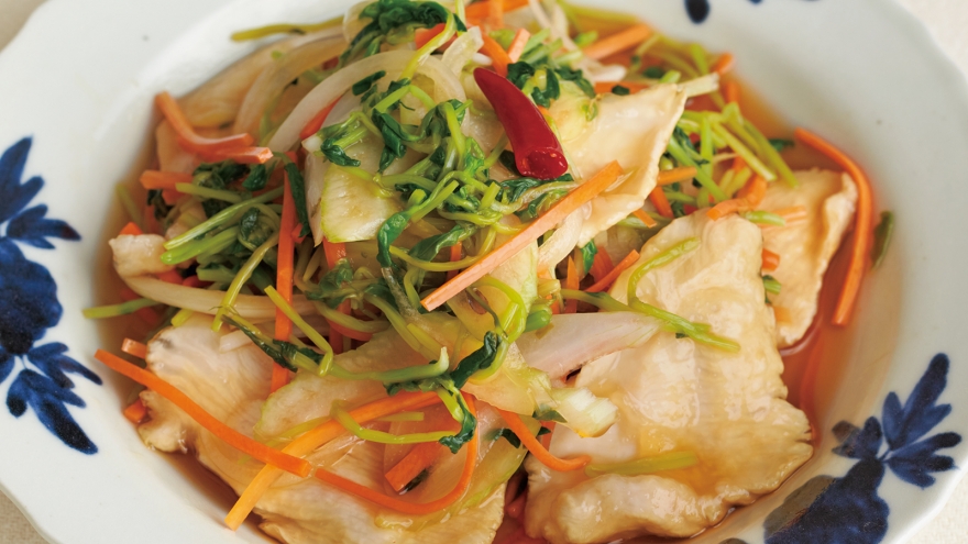 熱い調味液をなじませると野菜がしんなり。たっぷり食べられる。