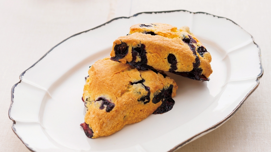 ブルーベリーがたっぷり入った、サックリ柔らかなスコーン。麺棒やカード、型などの特別な製菓道具を使わずに、気軽にできるレシピです。