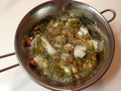 なべにサラダ油小さじ2を熱し、にんにくを入れ、弱火で香りを出す。ねぎ、しょうがも加えてしんなりするまで炒め、豆板醤と粗く刻んだ豆豉を加える。