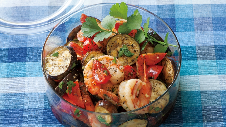 なすとえびの黒酢マリネ