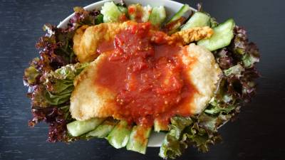 フライパンに揚げ油を1.5cm深さまで入れ、強火で170~180℃に熱する。サニーレタスは大きめの一口大にちぎる。きゅうりは麺棒で全体をたたき、食べやすい大きさに割る。鶏肉は厚みを半分に切ってラップにはさみ、麺棒で6~7mm厚さになるまでたたく。