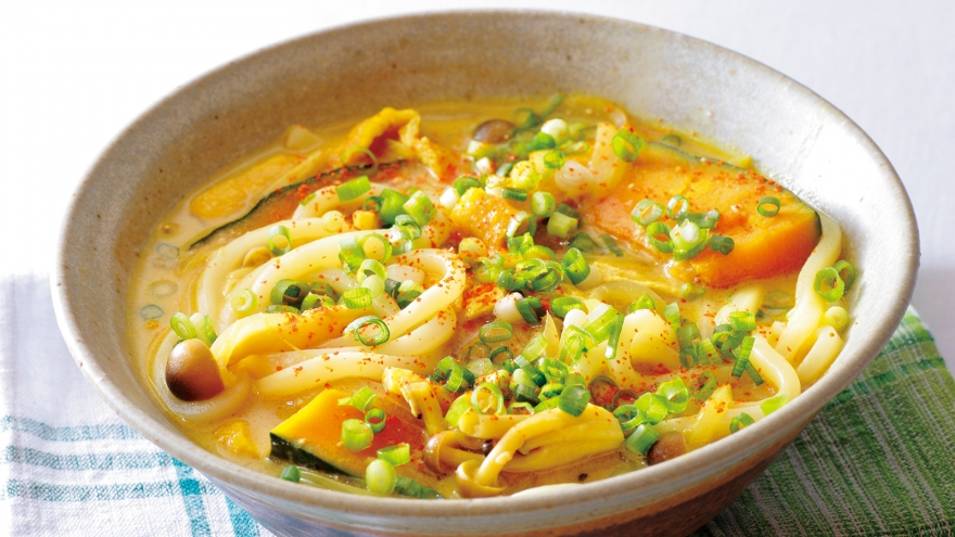 夏バテ気味の体をいたわる、温かいうどんです。食欲をそそるカレー味を、豆乳でマイルドに仕上げましょう。