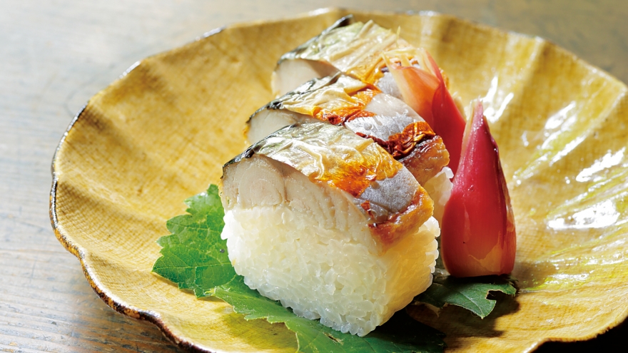「さばずし」はハードルが高いと思いがちです。でも、杉本さんの「焼きさばずし」なら、さばをしめる手間なし、ラップで巻ける、と意外に気軽につくれます。みょうがの甘酢漬けを添えて。