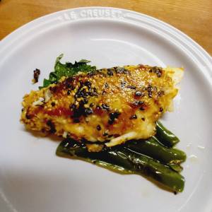 フライパンを軽く温め、オリーブ油小さじ1/2を入れる。油が高温にならないうちに、3を皮側を下にして入れ、ふたをする。弱めの中火で8~10分間焼く。