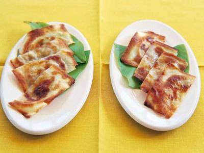 バナナはつぶすと風味が増します。春巻きの皮ではさむときもフライパンで焼くときも、上からギュッと押さえることがポイントです。