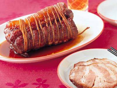 肉の表面全体にフォークを刺すと、煮汁がよく浸透し、しっかりと味がつく。