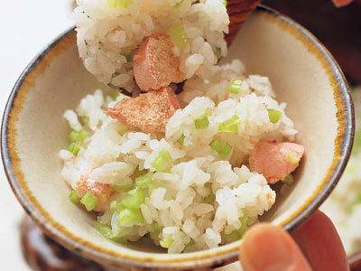 1が炊き上がったら、水けを絞った2を混ぜて蒸らす。