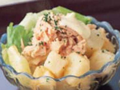 ホクホクのじゃがいもとツナのシンプルなサラダです。じゃがいもが熱いうちにドレッシングをからめるのがポイント。