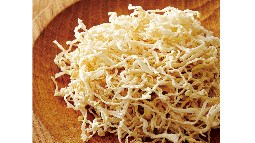 その名のとおり、大根を切って干したもの。大根の切り方や加工法によって、いろいろなタイプがあります。細く切り、生のまま干したひも状のものがポピュラー。戻しやすく、ビギナーにもおすすめです。切り干し大根には、生の大根とは違った風味と甘みがあります。