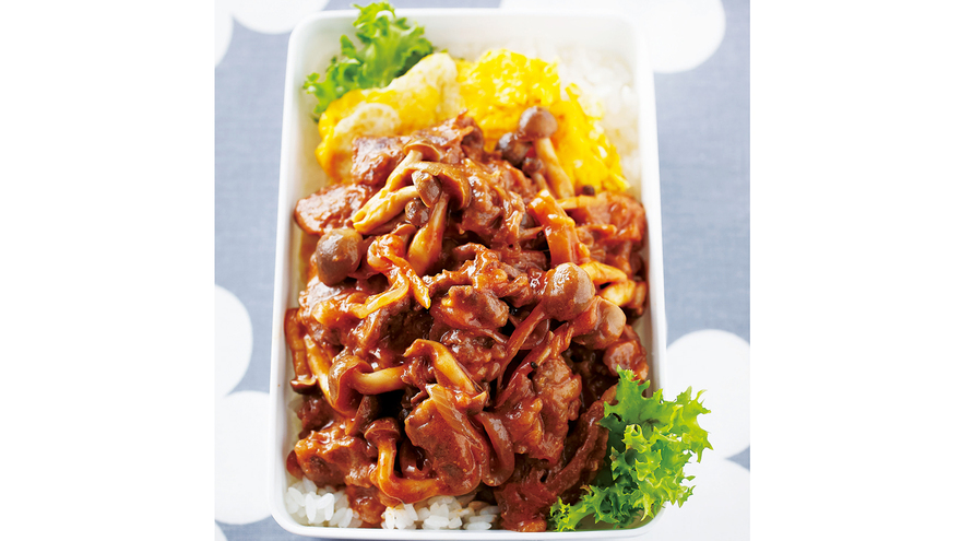 小さめのフライパンにサラダ油大さじ1を入れて中火で熱し、たまねぎを加えて約2分間炒める。しめじを加えて炒め、油が回ったら牛肉を加え、さらに約2分間炒める。【A】を加え、煮立ったら弱火にし、ふたをして約3分間煮る。塩、こしょう各少々で味を調え、取り出して冷ます。