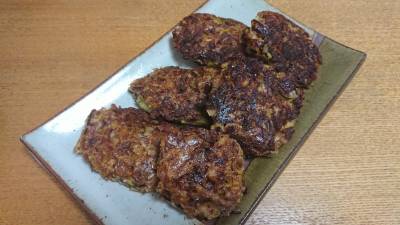 フライパンにサラダ油小さじ2を入れて中火で熱し、サラダ油少々をぬった計量スプーンの大さじで1を1杯強ずつすくって入れ、スプーンの背で表面を平らにする。約4分間焼いて焼き色がついたら、へらと菜ばしで返し、さらに約3分間焼く。