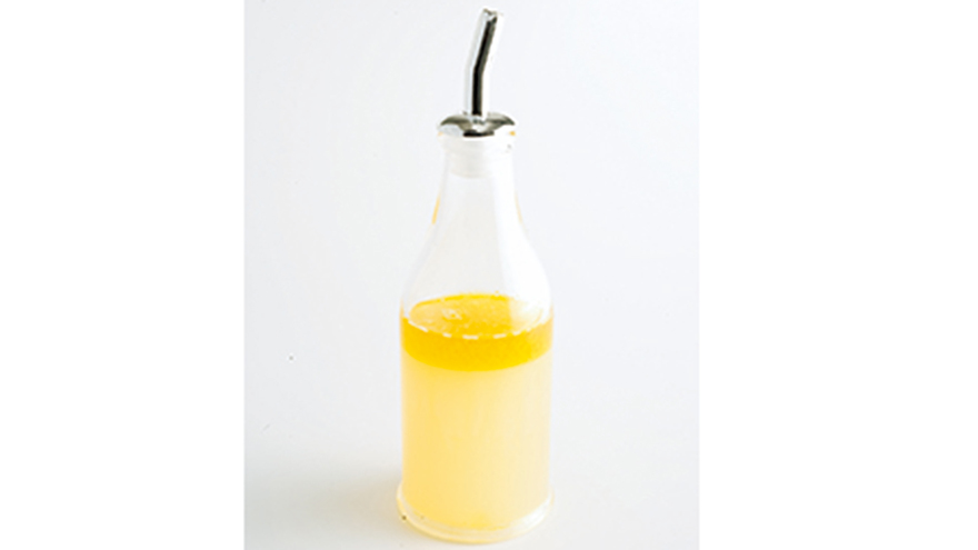 口の細いふた付きの容器(ドリンクの空き瓶などでもよい)に、果汁(約80ml)とほかの材料を入れる。ふたを閉め、上下によくふって混ぜる。