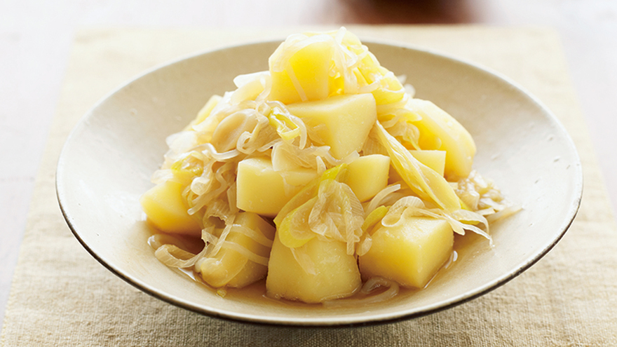 ねぎの甘みと香りが、ホックリ甘いじゃがいもにしみて、相乗効果のおいしさ。しらたきは仕上がり直前に加えてサッと煮ればOK。