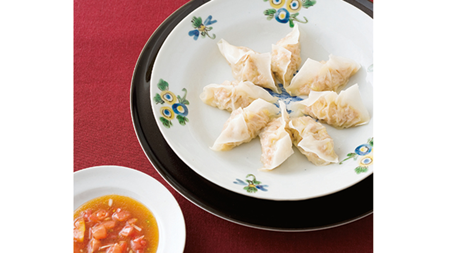薄いシューマイの皮を使うことで、ツルンとした柔らかさに。あんにセロリを加えて爽やかな味に仕上げています。