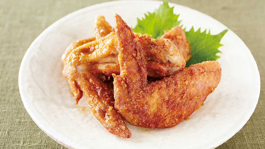 甘辛味のたれをカリッと揚げた手羽先にからめます。にんにく風味がほんのり効いておつまみにも最高です。