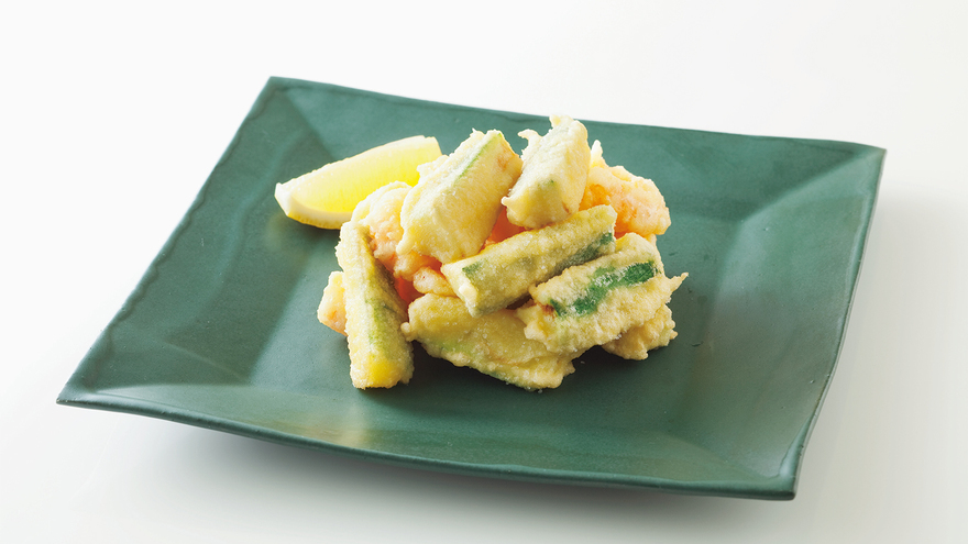 揚げることで、ズッキーニの淡泊な味わいが際立ちます。衣のカリッと軽やかな食感もおいしさの秘けつです。
