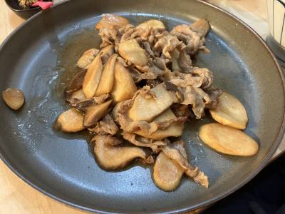 エリンギは炒めても縮まらず、食べごたえもあっておトクです。また、豚肉はきのこ全般と相性がよく、特売しているような、エリンギ以外のきのこと組み合わせても。肉から出る脂がおいしさのポイントなので、安いバラ肉が一番のおすすめです。炒め油も必要ありません。
