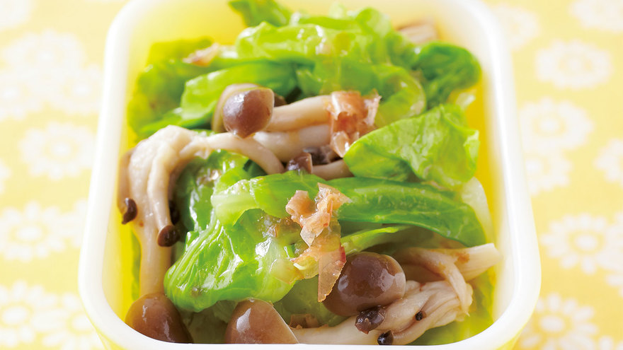 キャベツとしめじに削り節のうまみがしみ込みます。ごま油を加えることで風味アップ。日もちもよくなります。お弁当に詰めるときは汁けをきって。