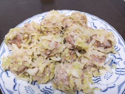 シューマイの皮の代わりにキャベツを使ったヘルシーシューマイです。豚肉のうまみがキャベツにしみ込んでおいしいです。