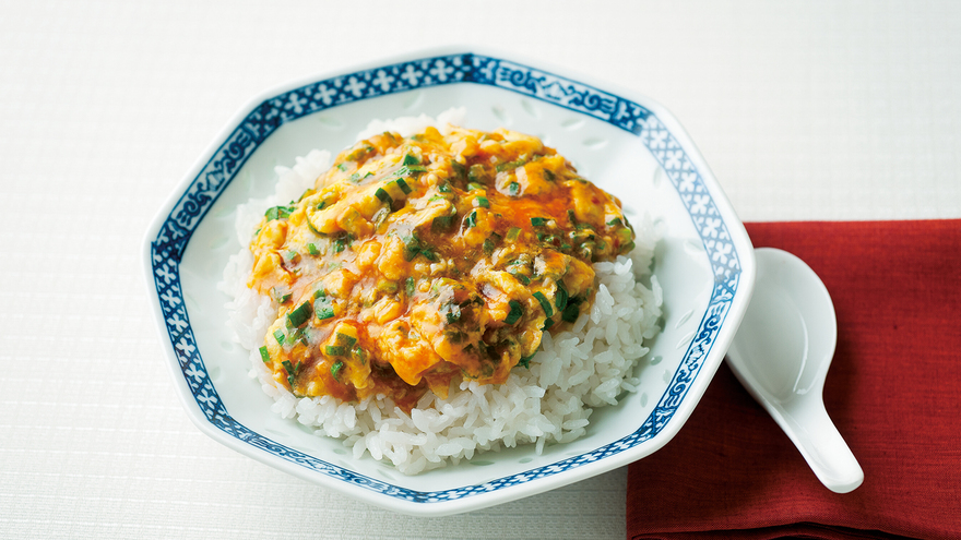 フワフワのかにたまに、甘酸っぱくて、ちょっぴり辛いチリソースが相性抜群です。手軽に本格的な味になります。