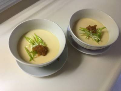 茶碗蒸しの1~6と同様に卵液をつくって耐熱の器2コに入れ、蒸して取り出す。
