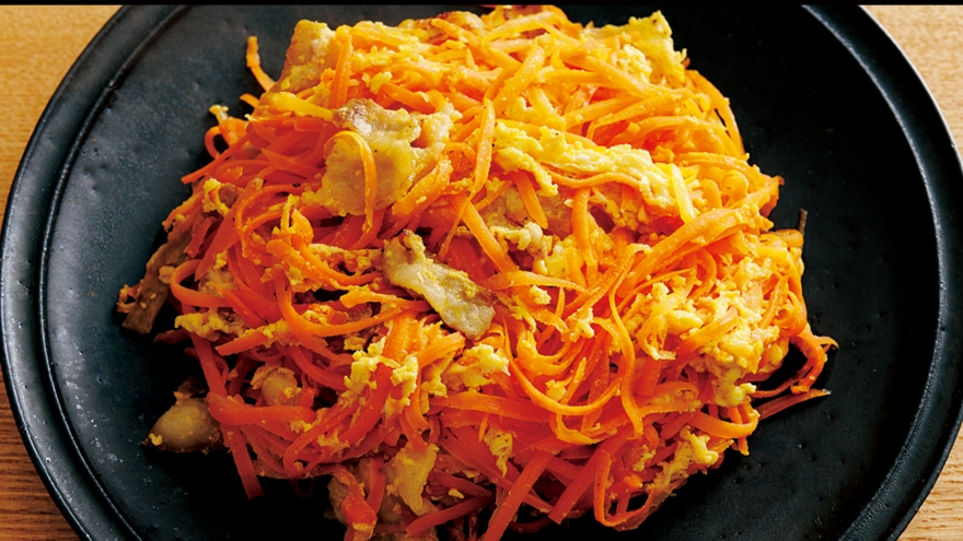 沖縄の郷土料理「シリシリ」。にんじんがたっぷり食べられる炒め物です。