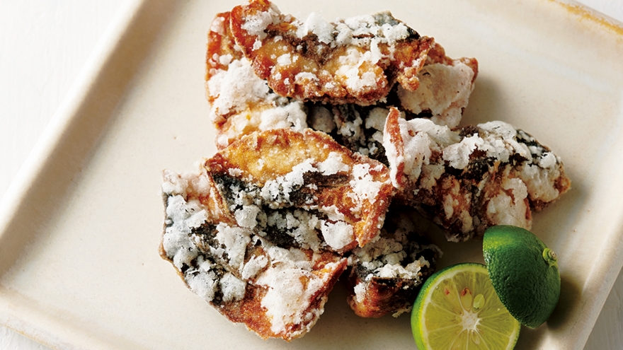 「さばの竜田揚げ」のように下味をつけてから揚げるときは、汁けをよく拭いてからかたくり粉をまぶすことがポイントです。余分な汁けがついた状態でまぶすと、かたくり粉がたくさんつき、重い衣になってしまいます。カラッと軽やかに揚げるために、汁けをしっかり除きましょう。