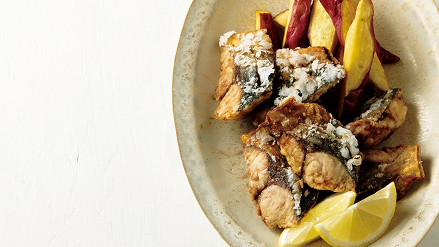 下味の調味料を変えるだけで、たちまちエスニック風の味わいになります。さつまいもは低温でじっくり揚げ、さばは中温でカリッと揚げます。