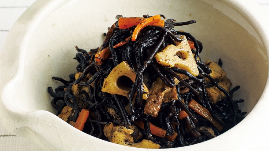 ひじきを炒めると、余分な水けがとび、コクが出る。