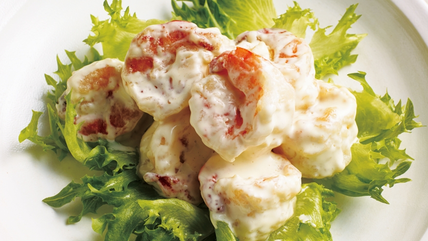 揚げたえびをコクのあるソースであえる、中国風の人気おかず。マヨネーズにヨーグルトを加えてのばすと、クリーミーなソースに。