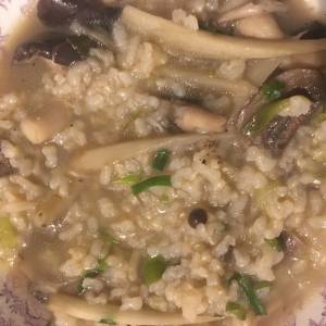 たっぷりのスープに玄米ご飯を入れ、雑炊のように仕上げる。