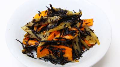 ごぼうと芽ひじきに、豆板醤で辛味を加えた一品。玄米との相性抜群、常備菜として重宝するおかずです。