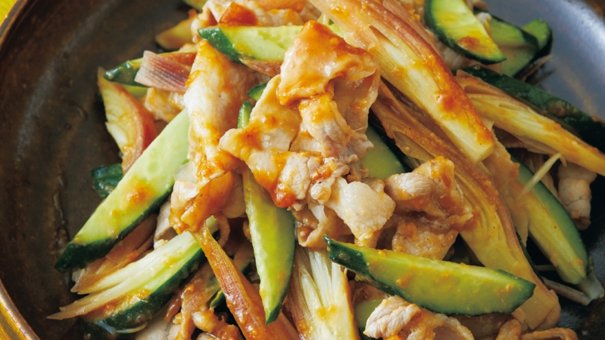きゅうりは縦半分に切り、斜めに3~4mm幅に切る。みょうがは縦半分に切り、縦に3~4mm幅に切る。ボウルに入れ、2、1の順に加えてあえる。