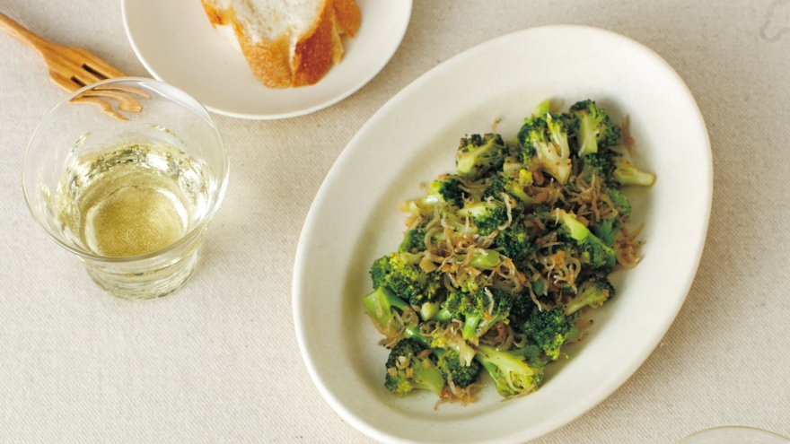 小さめのフライパンにオリーブ油とにんにくを入れ、中火にかける。香りがたって少し色づいてきたら、ちりめんじゃこ、ブロッコリーを加えて炒め合わせる。【A】を順に加え、弱めの中火にし、ブロッコリーが柔らかくなって水分が少なくなるまで炒める。