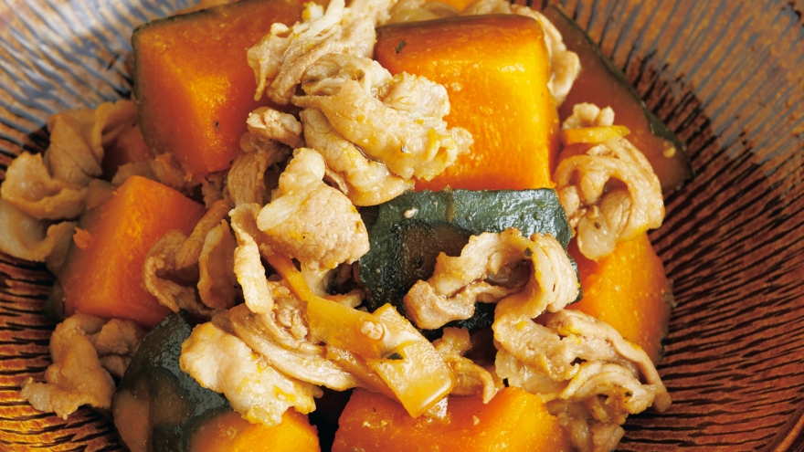 かぼちゃは皮を下にして入れ、豚肉は3~4切れずつところどころに入れる。落としぶたをすると、少ない煮汁でも味がよくしみる。煮詰めすぎず、最後に煮汁を大さじ3~4残すとしっとり煮上がる。