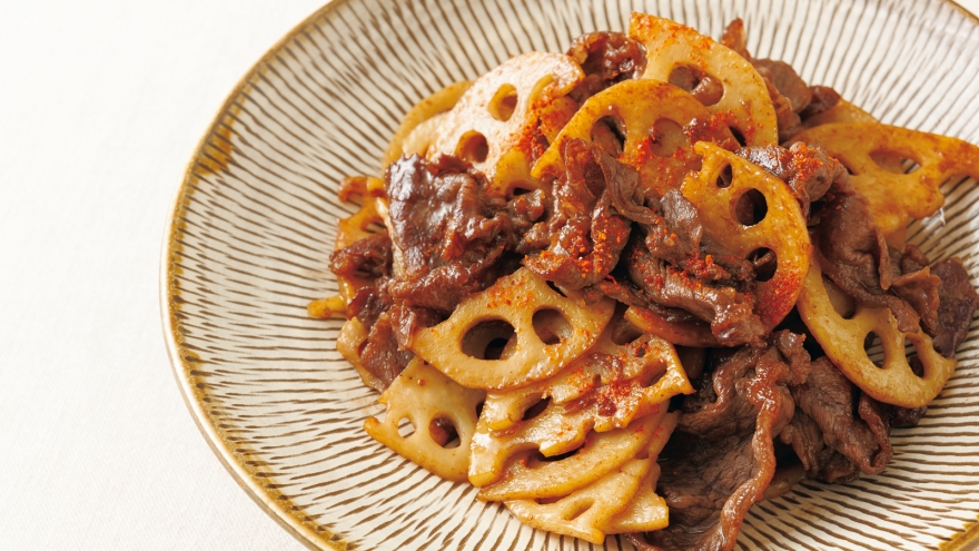 牛肉と一緒に甘辛く炒めます。レンコンの食感が楽しいメインのおかずになるきんぴらです。あっという間につくれるのも魅力。お弁当にも喜ばれます。