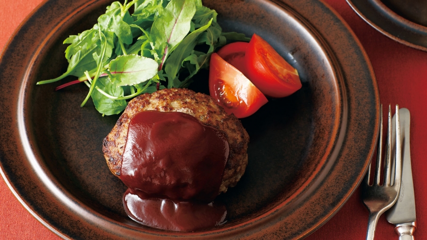 焦げついているところを木べらなどではがし、ペーパータオルで汚れを拭き取る。【A】を入れて再び中火にかけ、混ぜながら煮立てる。火を止め、8のハンバーグにかける。