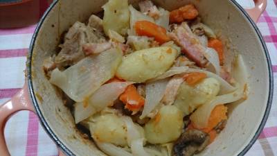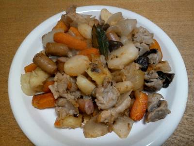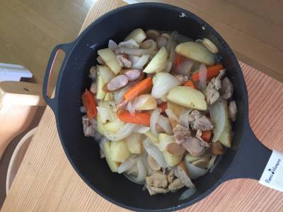 浮いてきたアクを除いてから大根を加える。柔らかくなるころに牛肉のうまみもしみ込む。