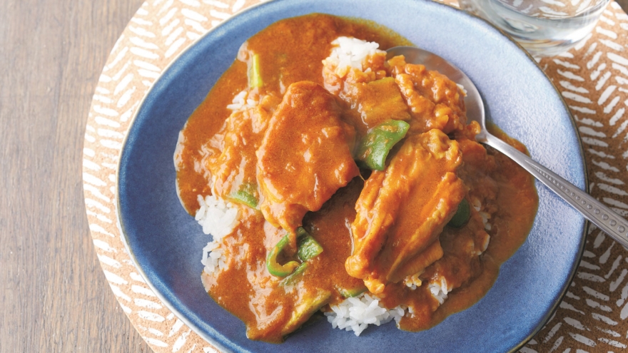 鶏手羽のカレーはうまみが出やすいのでカレー粉を使うのが初めてでもおすすめ。仕上げにピーマンを加えて食感と色みを生かします。