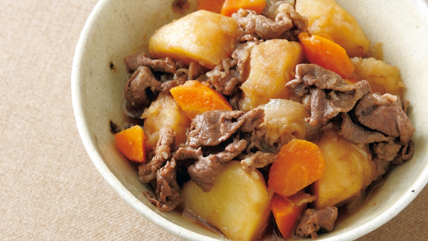 大きめに切ったじゃがいもはホックホク。薄切りのたまねぎは少し煮溶けてトロリ。心がホッとする甘辛味です。
