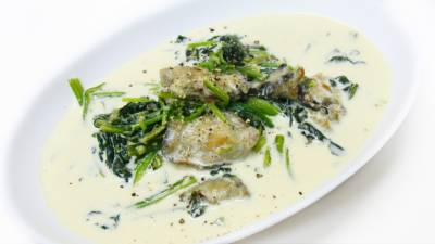 冬においしいかきとほうれんそうは相性抜群。別々に炒めてからサッと煮ると、かきはふっくら、ほうれんそうは色よく仕上がります。