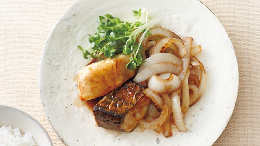 淡白なさわらを甘辛いたれでこっくりと。一緒に焼く新たまねぎは、厚めに切ってじっくり火を通して甘みを引き出します。