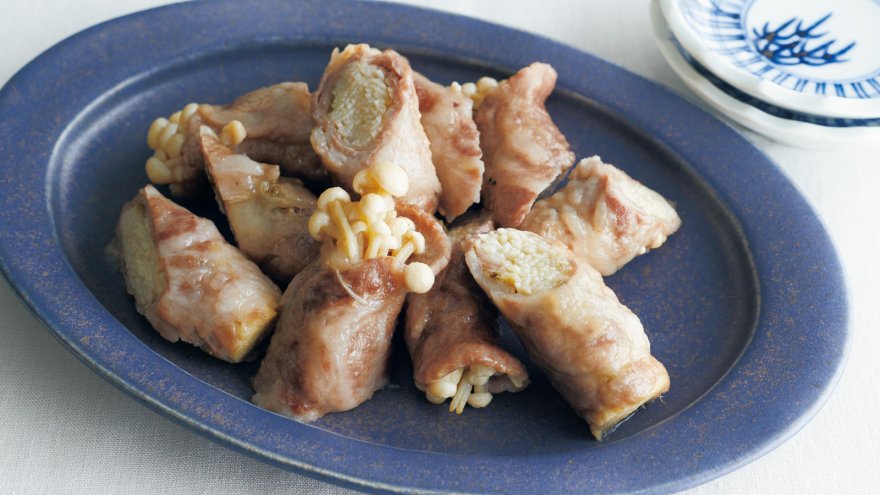 電子レンジにかけて豚肉とえのきのうまみをギュッと閉じ込めます。柚子(ゆず)こしょうをピリッと効かせ、メリハリのある味に。